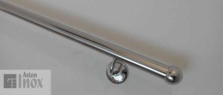 Inox zidni rukohvati s kuglama na kraju, okrugli rukohvati za zavarenim nosačima rukohvata na kojima su sidrene ploćice prekrivene rozetama. Svaka ploćica se sidri sa 3 vijka. Na krajevima rukohvata su zavarene ukrasne Inox kugle'.